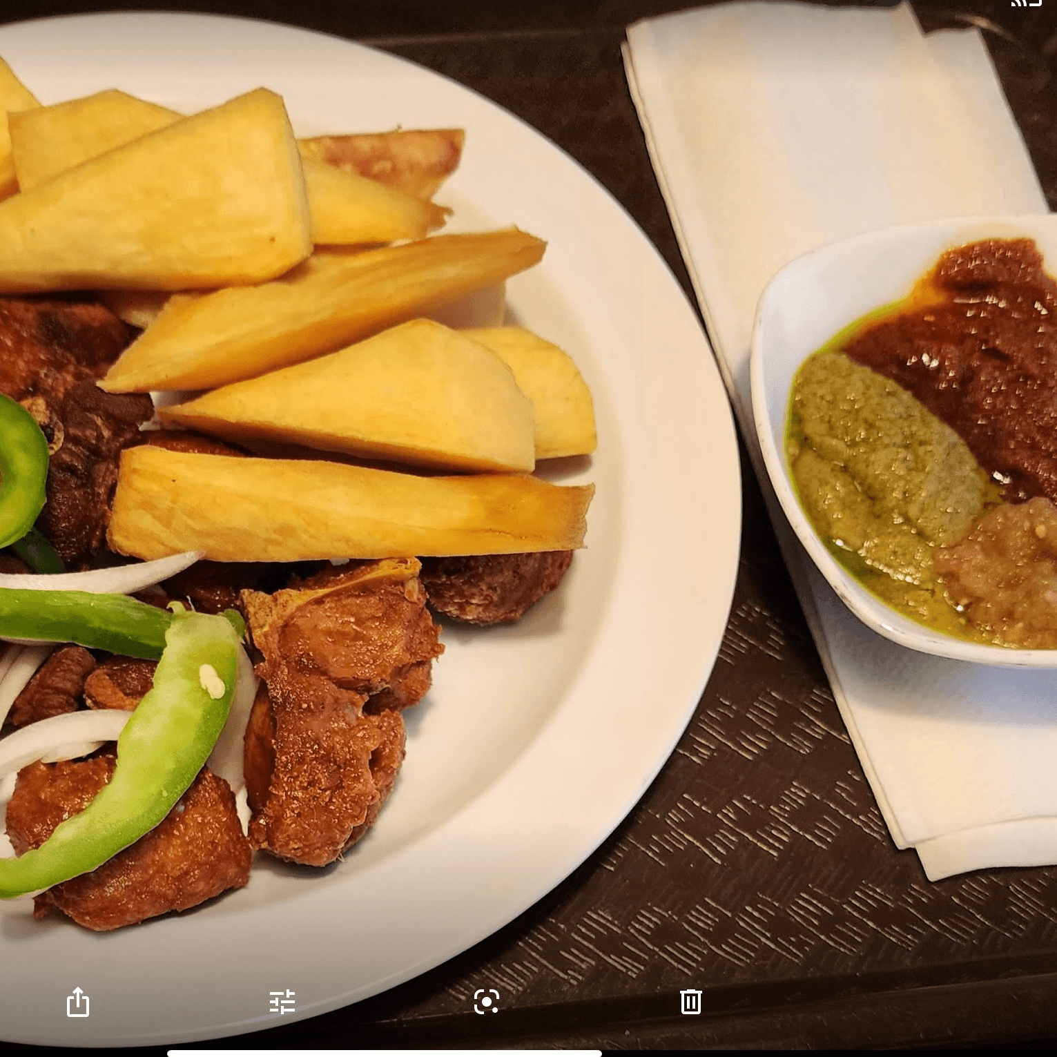 Fried Crispy Yam With Blended Spicy Pepper And Chofi