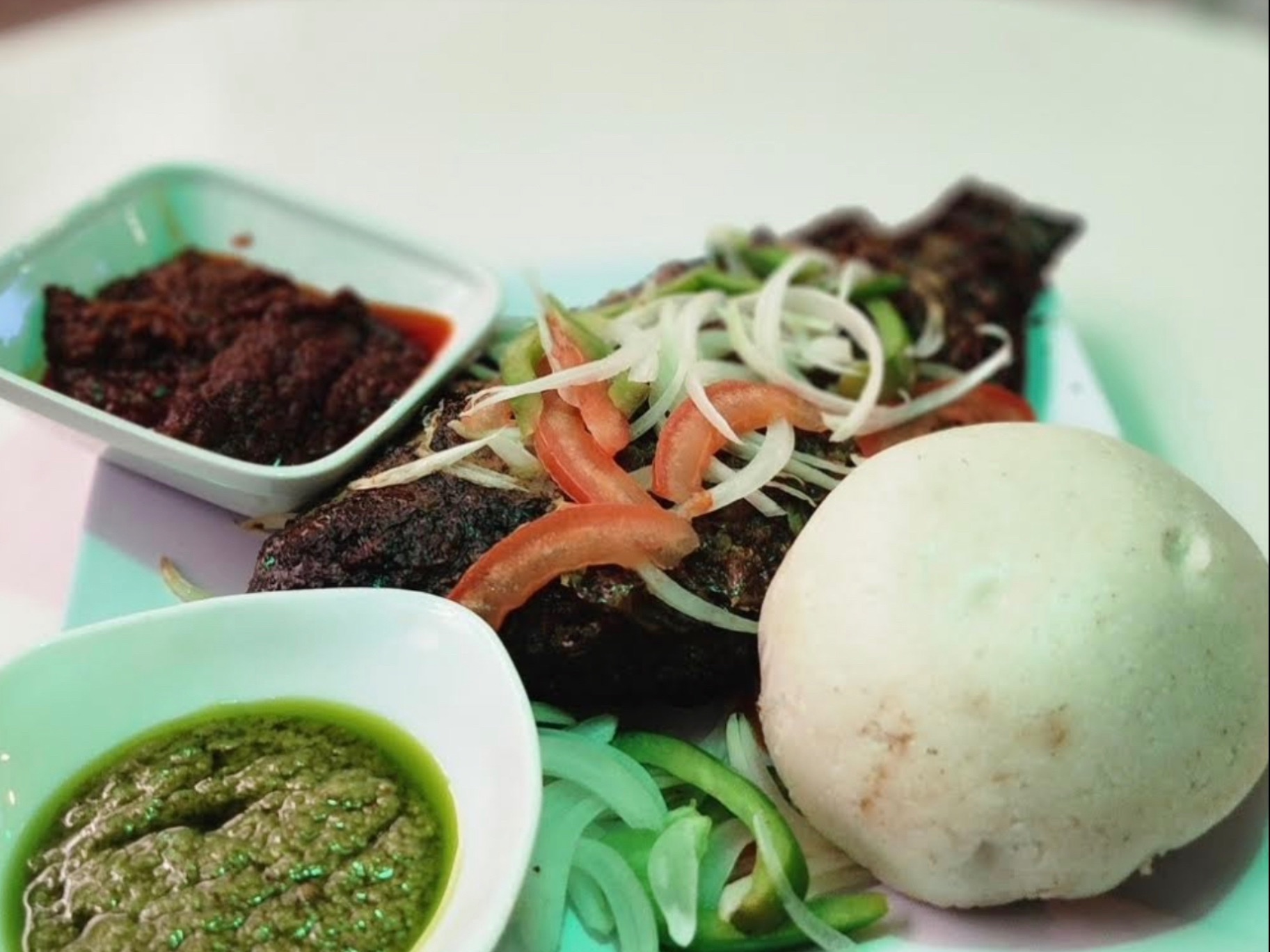 Banku and tilapia is a quintessential Ghanaian delicacy, famously known for its bold flavors and satisfying textures. This iconic duo features fermented dough balls served alongside spicy, well-seasoned full size tilapia fish