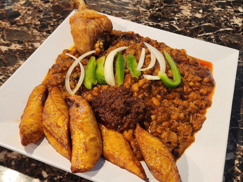 Red Red (Ghanaian Beans Stew): This is the most iconic version. It is a hearty stew made with black-eyed peas, palm oil, tomatoes, and onions and served with fried rip plantains, or rice.