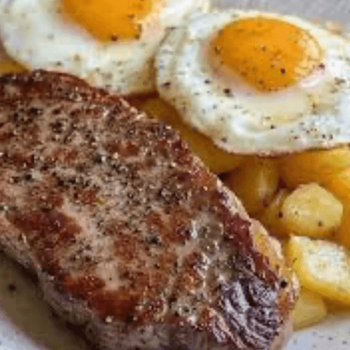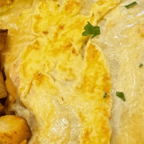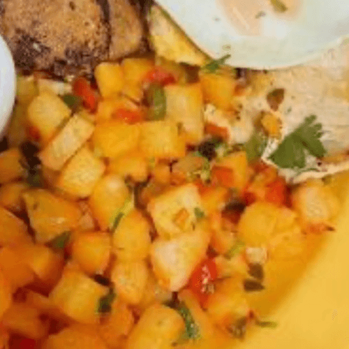 Gyro meat, feta cheese and tzatziki sauce and served with home fries and toast