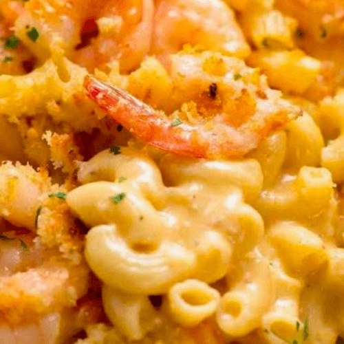 Made with elbow macaroni, jumbo shrimp and a creamy blend of cheeses.