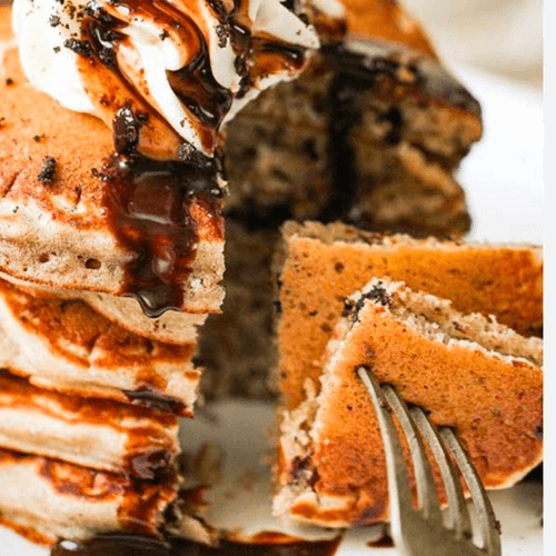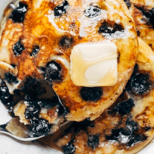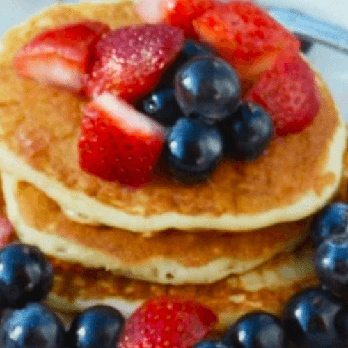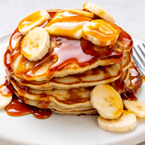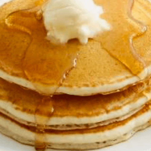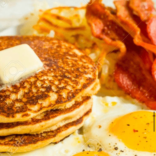 2 pancakes, 2 eggs, 2 strips of bacon, 2 pork sausage links and homefries