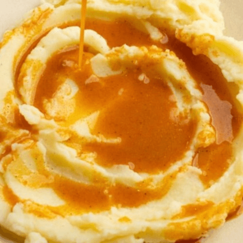 Fresh in house lightly seasoned beef, sliced thin over white bread slices, topped with brown gravy and served with mashed potato and corn