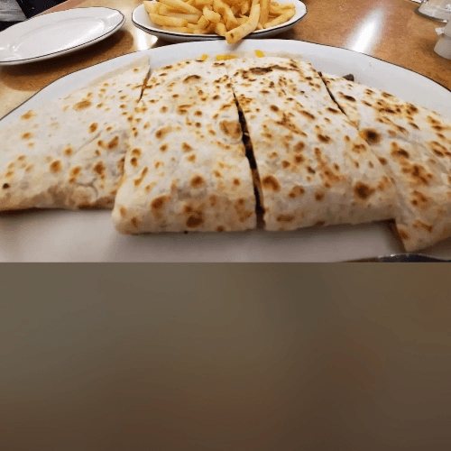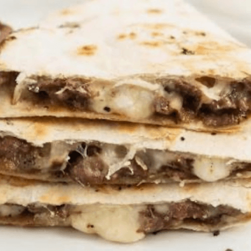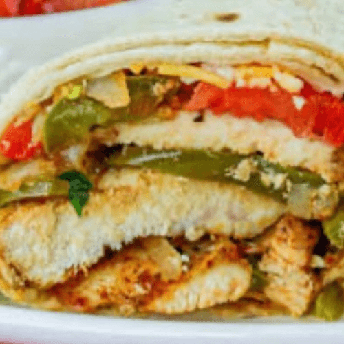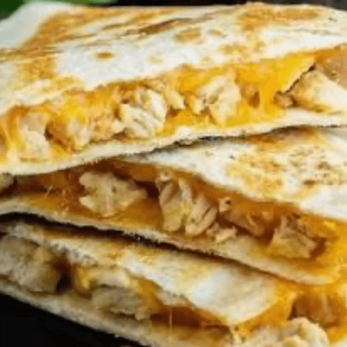 CHICKEN BREAST,MONTEREY JACK CHEDDAR CHEESE,GRILLED ONIONS AND PEPPERS.SERVED WITH SALSA AND SOUR CREAM