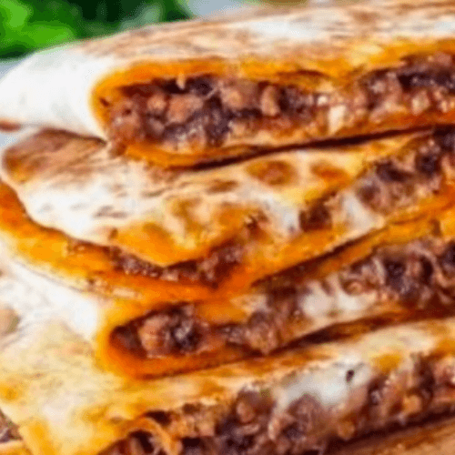 Very light Seasoned ground beef SOUR CREAM,SALSA and guacamole