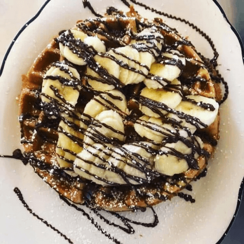 With two scoops of your choice of ice cream , chocolate Nutella and whipped cream