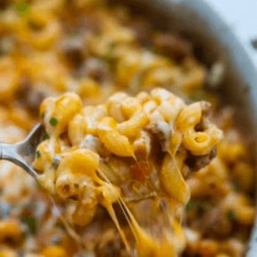 Made with elbow macaroni, lightly seasoned crumbled beef and a creamy blend of cheeses.