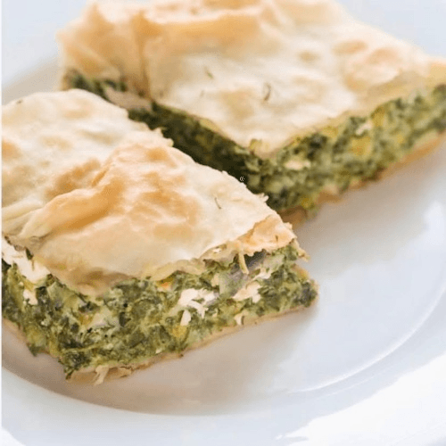 Filo dough stuffed with Greek spices and herbs, spinach and feta cheese