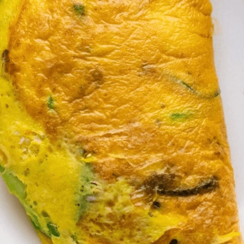 Made with two eggs, ham, onion and peppers omelette style in a sandwich